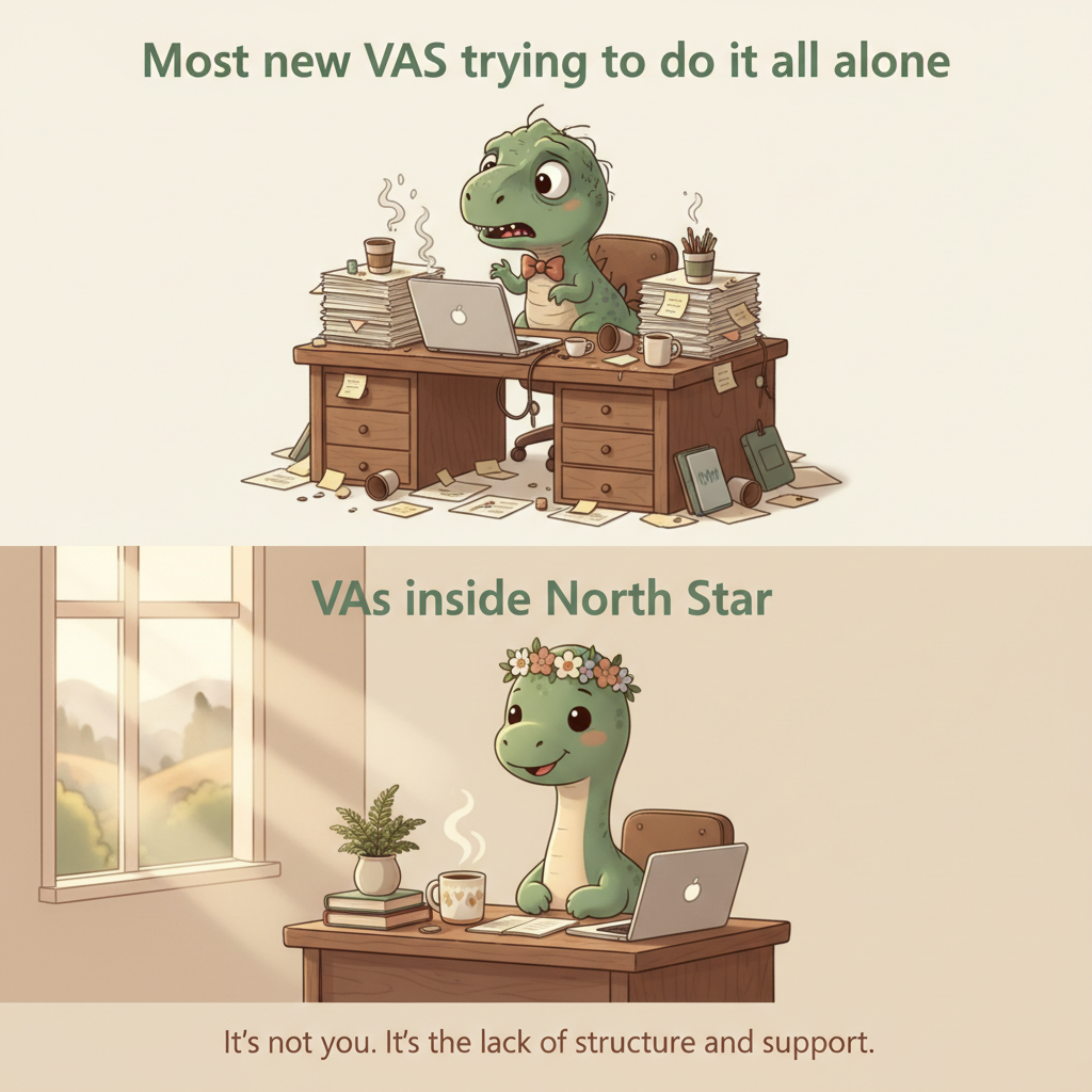 Many aspiring VAs struggle to get started on their own. North Star provides tools, templates, and support to make launching your VA business easier.